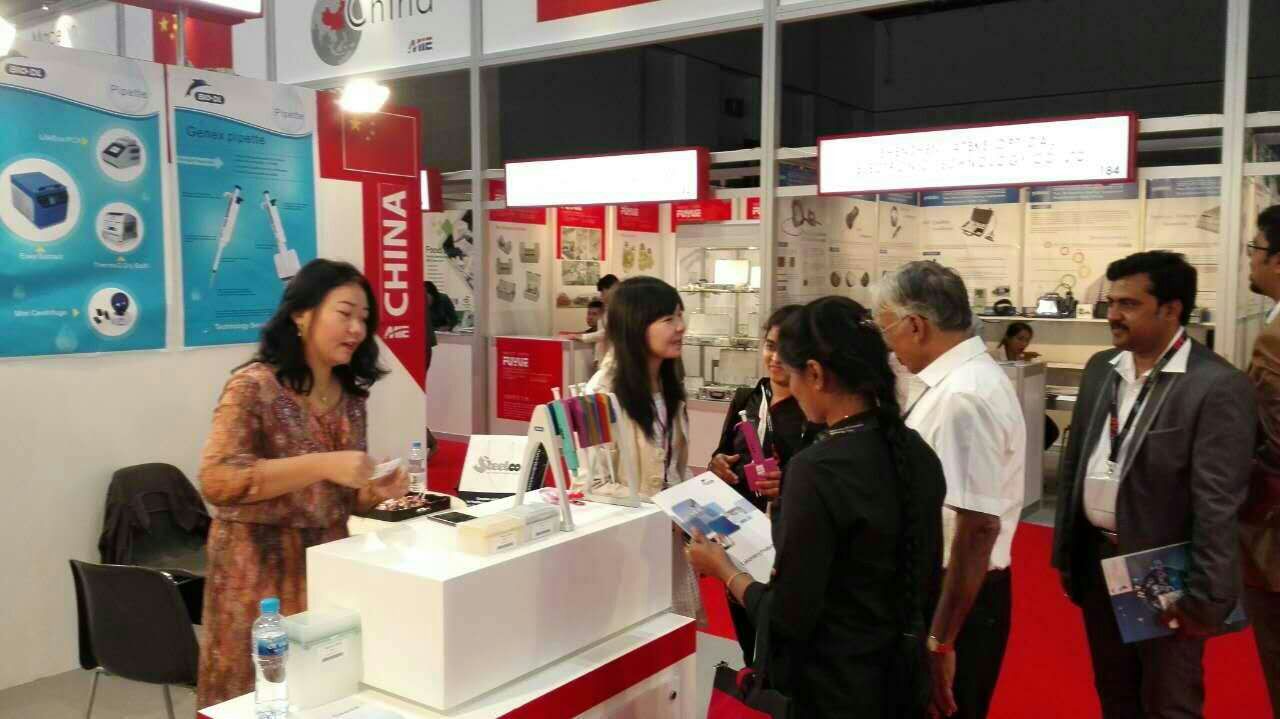 展會現場,【BIO-DL】寶予德展示的產品有經典的Genex、Genex Plus、Colour移液器系列、暢銷產品Mini掌上離心機、Thermo Q恒溫金屬浴,同時還首次向國外客戶引薦重磅產品Life Eco梯度PCR儀、超群出色的Easy Extract 生物樣品研磨儀。