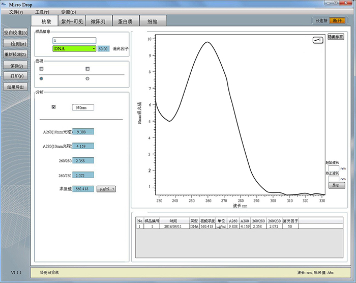 (6)顯示吸光度值的同時,程序直接給出濃度值(核酸、蛋白和熒光染料);