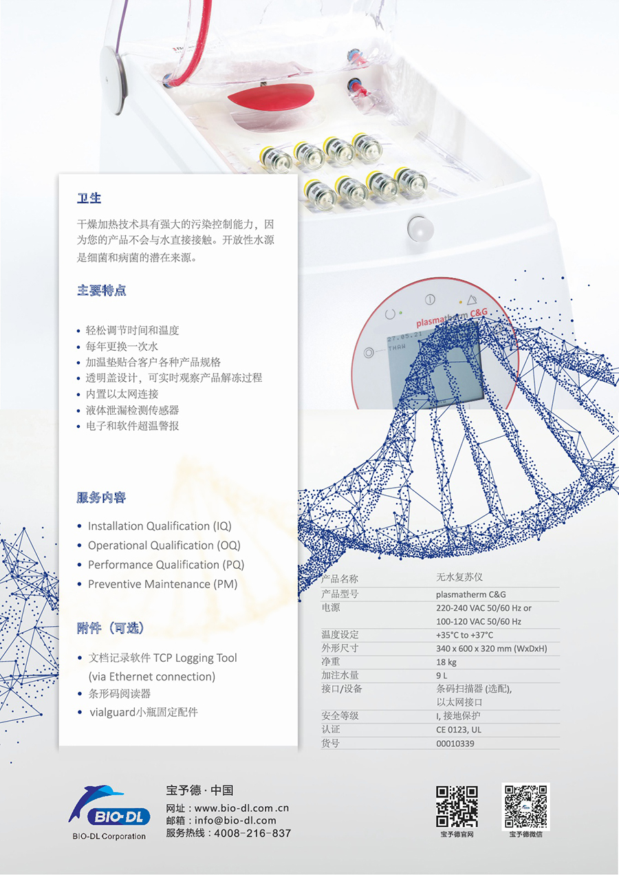 無水復蘇儀plasmatherm C&G彩頁細胞治療